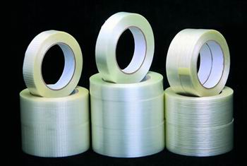 Filament Tape - is a clear polyester film backed tape, reinforced with continuous fiberglass yarn filaments. It has a very aggressive rubber/resin blend adhesive system. It provides excellent abrasion, moisture, and scuffs resistance, and also has very good adhesion to its own backing.